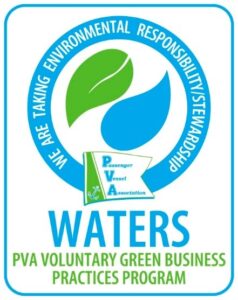 Certified Under PVA Green Waters – We applied for, and received, certification in the Passenger Vessel Association’s (PVA) Green Ship Program aimed at reducing waste, ocean pollution/litter and operating in a greener more sustainable environment.